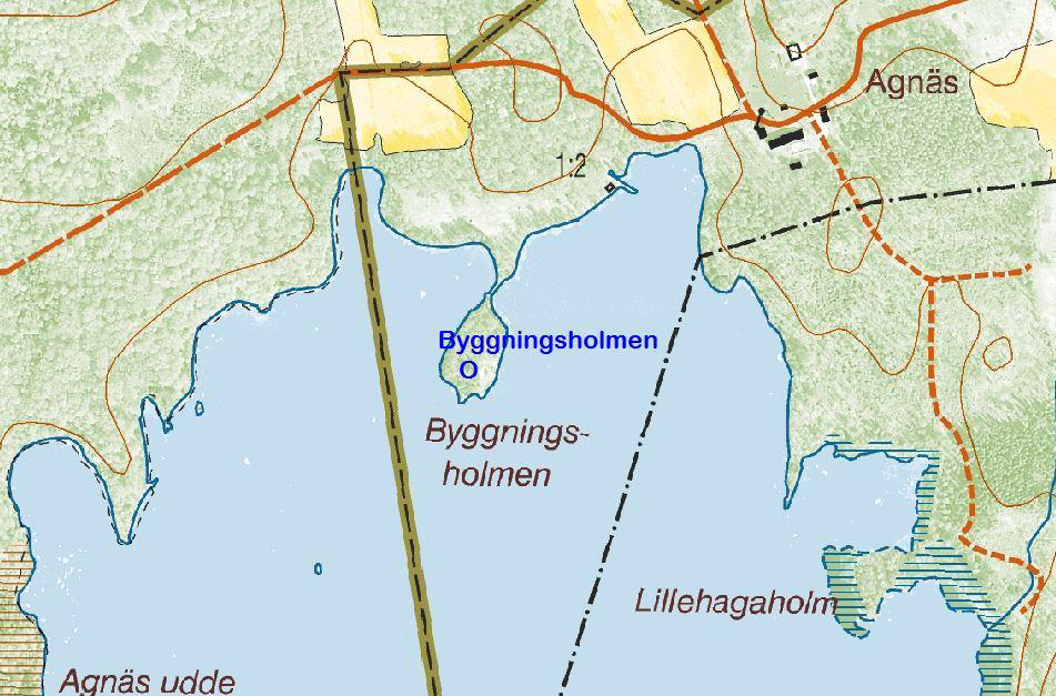 På Byggningsholmen finns stenresterna efter en backstuga/jordkula samt en husgrund, sannolikt av en ryggåsstuga från slutet av 1700-talet. Den siste som bodde i ”jordkulan” var Nils Peter Petersson,