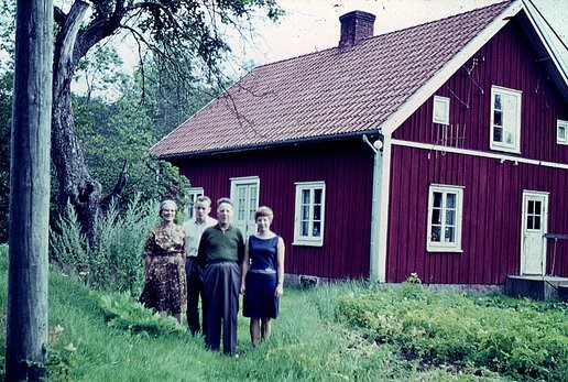 Kolboda – från höger Berit (Gunn), Gunnar, Hanna, Evy och Nils Karlsson med dottern Anne.