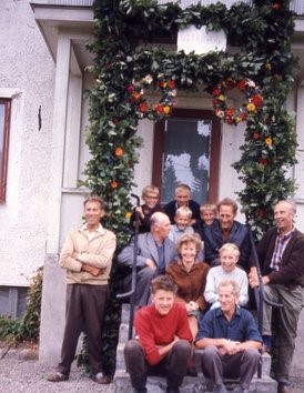 År 1968 – stående: Oscar Lundin och Rune Johansson, sittande uppifrån och ner: Bengt Johansson och Bosse Karlsson, Karl i Rosenlund, Jan, Mikael och Karl-Ernst Svensson, Vivvi Svensson och Sigbritt Karlsson, Ingemar Svensson och Karl Karlsson – Solhaga