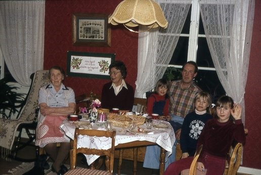 Hanna och Nils-Erik Karlsson tillsammans med Ann-Marie Nordström och tre av hennes barnbarn 1980