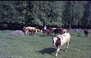Bilder från Östregård. Nils-Erik och Rosa Karlsson och korna.